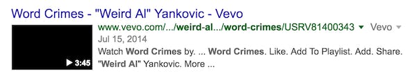 Les résultats vidéo (en particulier YouTube) peuvent afficher une miniature. Ils étaient autrefois une véritable verticale, mais sont maintenant davantage une amélioration organique.